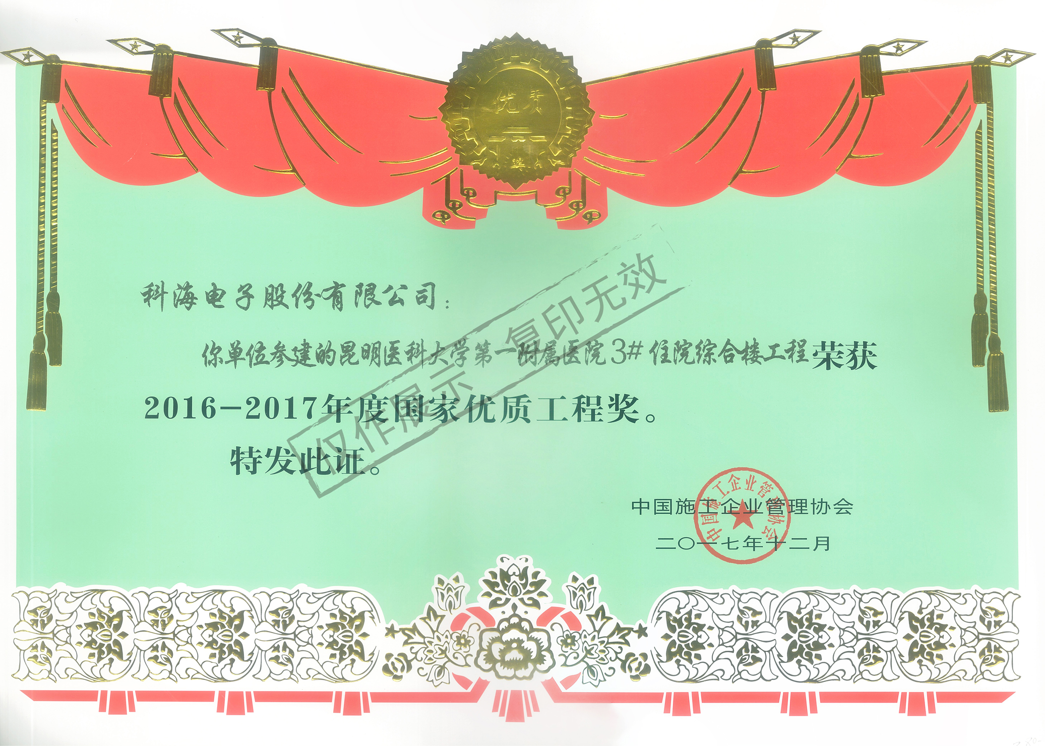 昆明醫(yī)科大學(xué)第一附屬醫(yī)院優(yōu)質(zhì)工程獎